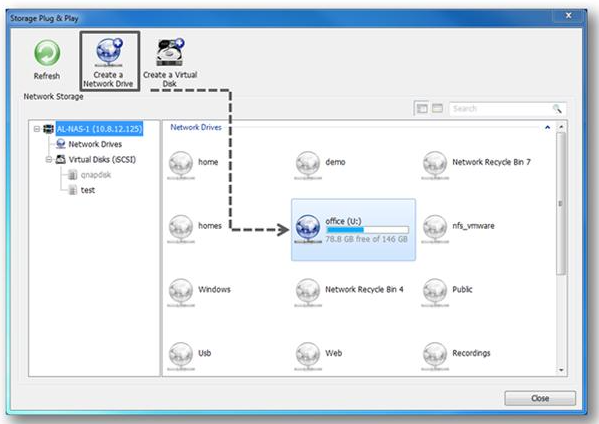 許多家庭和辦公室用戶常常對如何擴充PC的容量空間或如何建立PC跟NAS之間的聯(lián)機感到頭痛。但在您安裝Windows版本的QNAP Finder后這將變得非常容易,您可以直接登入到NAS開始您PC上的存儲規(guī)劃。即使是一個非技術人員也可以輕松地構建一個大容量的網絡存儲空間。例如,當使用者使用QNAP Finder登入NAS后,他或她可以快速建立一個網絡驅動器機并把他或她的照片大量快速上傳到NAS,或是將PC聯(lián)機到虛擬磁盤(iSCSI聯(lián)機)以擴充其存儲空間。