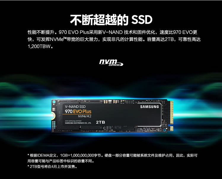 在接口上,三星970EVO系列固態(tài)硬盤,它基于M.2接口的V-NAND SSD,最新的V-NAND技術(shù)采用64層堆疊,可顯著提高產(chǎn)品的數(shù)據(jù)傳輸速度、功率效率和耐用性。三星970EVO還擁有新的Phoenix控制器,提升了主機(jī)系統(tǒng)和控制器之間的通信速度。