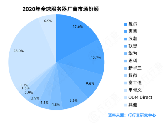全球服務(wù)器市場(chǎng)競(jìng)爭(zhēng)激烈,中美兩國(guó)品牌廠商基本分割了全球服務(wù)器市場(chǎng)主要部分。據(jù)行行查數(shù)據(jù)顯示,2020年,戴爾、惠普市場(chǎng)份額位列前二,分別為17.6%、12.7%,穩(wěn)居服務(wù)器市場(chǎng)第一梯隊(duì);浪潮信息、聯(lián)想、華為以9.6%、9.6%、4.8%的市場(chǎng)份額居于市場(chǎng)第二梯隊(duì)。在品牌廠商之外,ODM廠商的快速擴(kuò)張也值得關(guān)注。在開(kāi)放計(jì)算興起的背景下,云服務(wù)巨頭提出了更多定制化開(kāi)發(fā)需求,傳統(tǒng)服務(wù)器廠商制定行業(yè)標(biāo)準(zhǔn)生產(chǎn)軟硬件一體化產(chǎn)品的模式逐漸難以滿足客戶,這一趨勢(shì)使得ODM廠商市場(chǎng)份額持續(xù)提升。