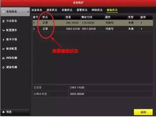 【方法2】選擇“主菜單 → 系統(tǒng)維護(hù) → 系統(tǒng)信息”,然后選擇“硬盤狀態(tài)”屬性頁,進(jìn)入系統(tǒng)信息的“硬盤狀態(tài)”界面。