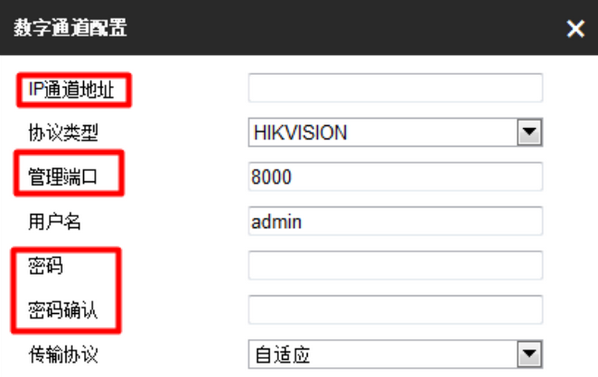4、如果是新的錄像機(jī),需要點(diǎn)擊 “添加”,在彈出的對(duì)話框中輸入相關(guān)信息。比如IP通道地址、管理端口(默認(rèn)8000),用戶名和密碼等,然后點(diǎn)擊確認(rèn)即可。