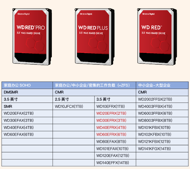 基于CMR的WD Red?系列硬盤,西部數(shù)據(jù)還推出了WD Red? Pro和WD Red? Plus。無論是中等規(guī)模的小型辦公室、家庭辦公(SOHO)的工作負(fù)載,還是需求密集型中小企業(yè)(SMB),甚至到需求更嚴(yán)苛的應(yīng)用環(huán)境,都能夠在紅盤系列中找到合適的產(chǎn)品。
