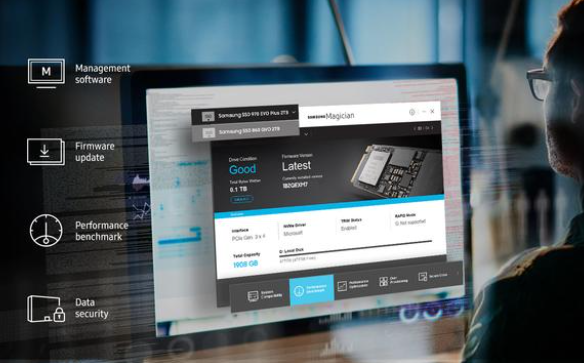 三星對于旗下的零售級產(chǎn)品有推出專用的SSD優(yōu)化軟件,三星魔術(shù)師。雖然PM981a和三星970EVO PLUS性能一致,但是由于型號(hào)不同,其無法在三星魔術(shù)師軟件中被識(shí)別。這也是鑒別的方式之一。由于無法使用三星魔術(shù)師軟件,三星SSD的雞血模式也就無法使用了,有些玩家可能不了解三星雞血模式,該模式可以采用內(nèi)存作為硬盤緩存大幅提高瞬時(shí)讀寫性能。