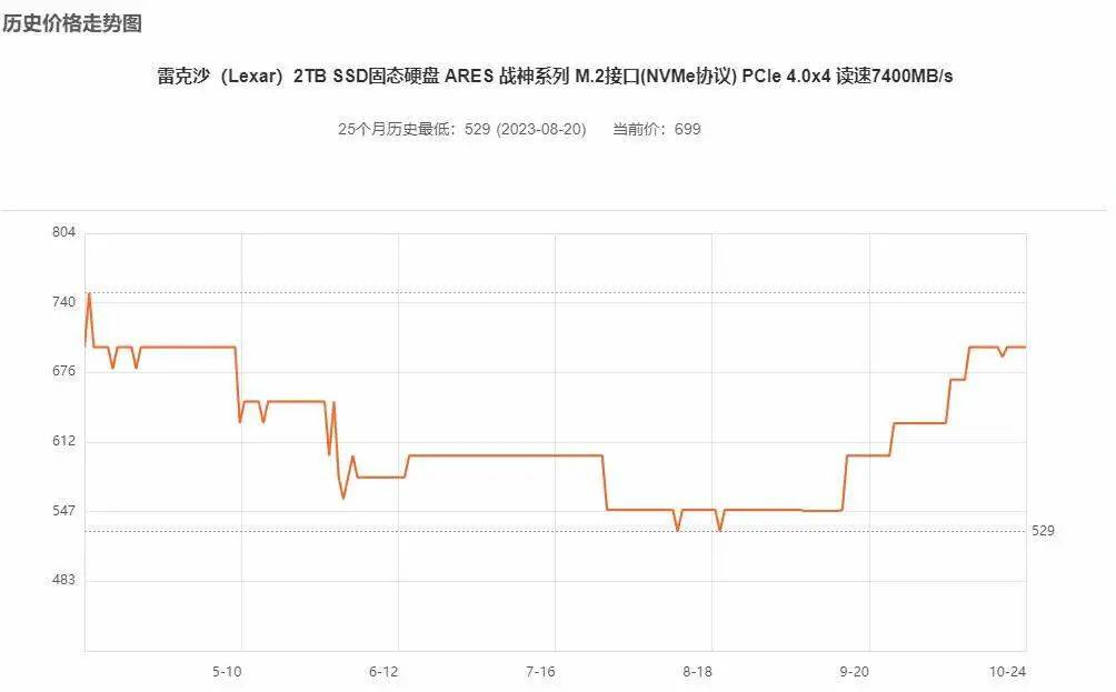 除了這些大廠,國內(nèi)模組廠也跟進了漲價,以雷克沙為例,2TB的ARES戰(zhàn)神系列雙十一售價來到了699元,對比618期間的529元價格,價格上漲170元,并且在雙十一之前,9月中旬開始,出現(xiàn)連續(xù)的調(diào)漲動作。