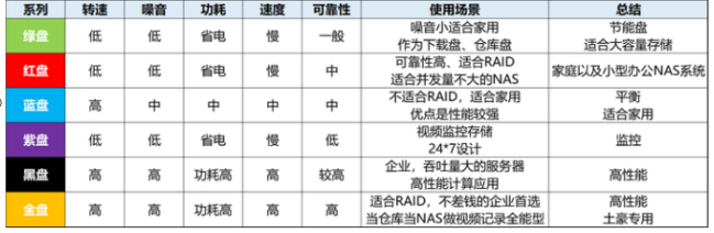 目前西數(shù)的機(jī)械硬盤有綠盤、紅盤、藍(lán)盤、紫盤、黑盤、金盤幾個(gè)系列。