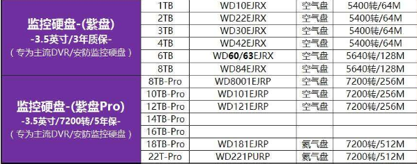 1.選擇監(jiān)控硬盤(pán)建議大牌,比如西數(shù)監(jiān)控紫盤(pán)和西數(shù)監(jiān)控紫盤(pán)Pro就是很好的選擇。