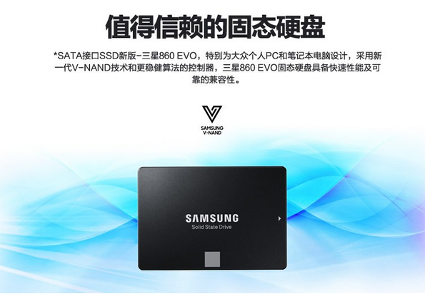 品牌:三星 系列:860 EVO 型號(hào):MZ-76E2T0B/CN 存儲(chǔ)容量:2TB 接口類型:SATA3(6Gbps) 硬盤尺寸:2.5英寸 緩存:2GB 讀取速度:550MB/s 寫入速度:520MB/s 4K隨機(jī)讀:98000 IOPS 4K隨機(jī)寫:90000 IOPS 電源功耗:平均:3.0W 最大:4.0W 平均無故障時(shí)間:150萬小時(shí) S.M.A.R.T.支持:支持 TRIM功能:支持TRIM 防震能力:1500G 外形尺寸:100×69.85×6.8mm 產(chǎn)品重量:60g 工作溫度:0-70℃ 860 EVO在包裝上依然延續(xù)了三星SSD一貫的設(shè)計(jì)風(fēng)格,正面以產(chǎn)品為主體,左下角印有…