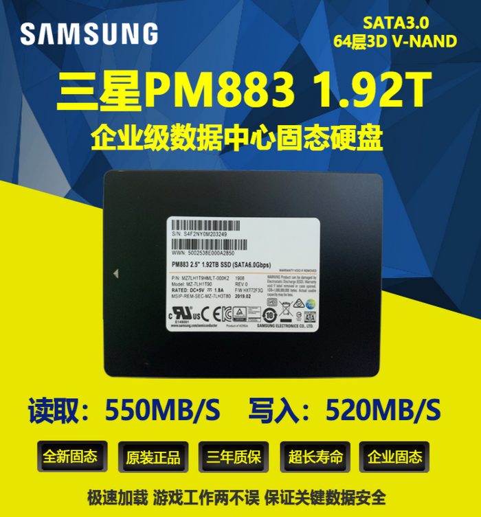 查看更多品牌: Samsung/三星 型號(hào): PM883 硬盤容量: 480G 尺寸: 2.5英寸 接口類型: SATA 料號(hào):MZ7LH480HAHQ-00005 成色: 全新 售后服務(wù): 店鋪三包 包裝體積: 靜電袋包裝 PM883是三星860…